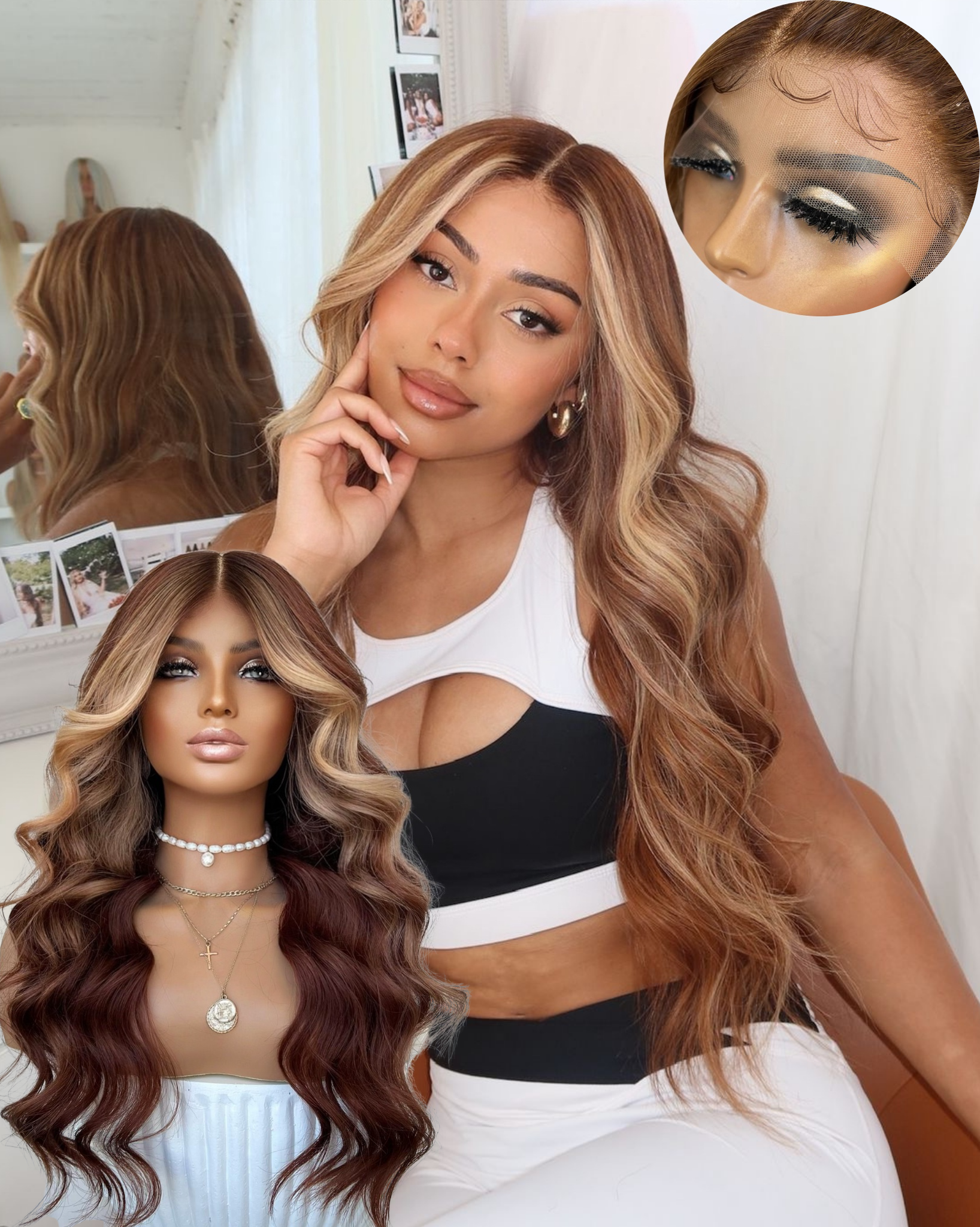 Please note: We take new photos for each of our wigs so our clients know exactly the wig they are getting. The wig in the photo is the exact wig you will receive. We just want to note that sometimes lighting on phones and screens can look slightly different & cannot be relied on to always accurately represent colours.🤍